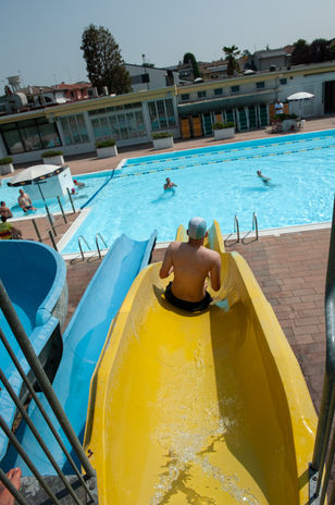 Composta da una vasca con varie profondità, una parte alta 1,50 m adatta sia al nuoto che al relax, una seconda parte, più piccola, alta 0,80 m, ideale per chi vuole rilassarsi prendendo il sole. Infine una terza parte, attrezzata con scivoli adatti anche ai più piccoli.